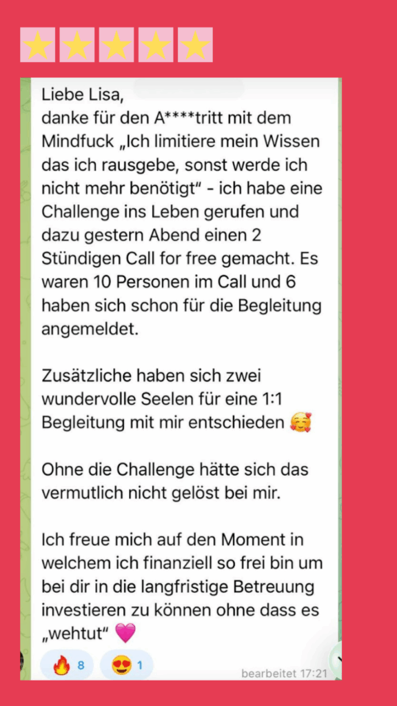 Du kennst die Stellschrauben, weißt wie du Traumkunden anziehst und weißt, welche Schritte du gehen darfst, um nachhaltigen Erfolg aufzubauen.